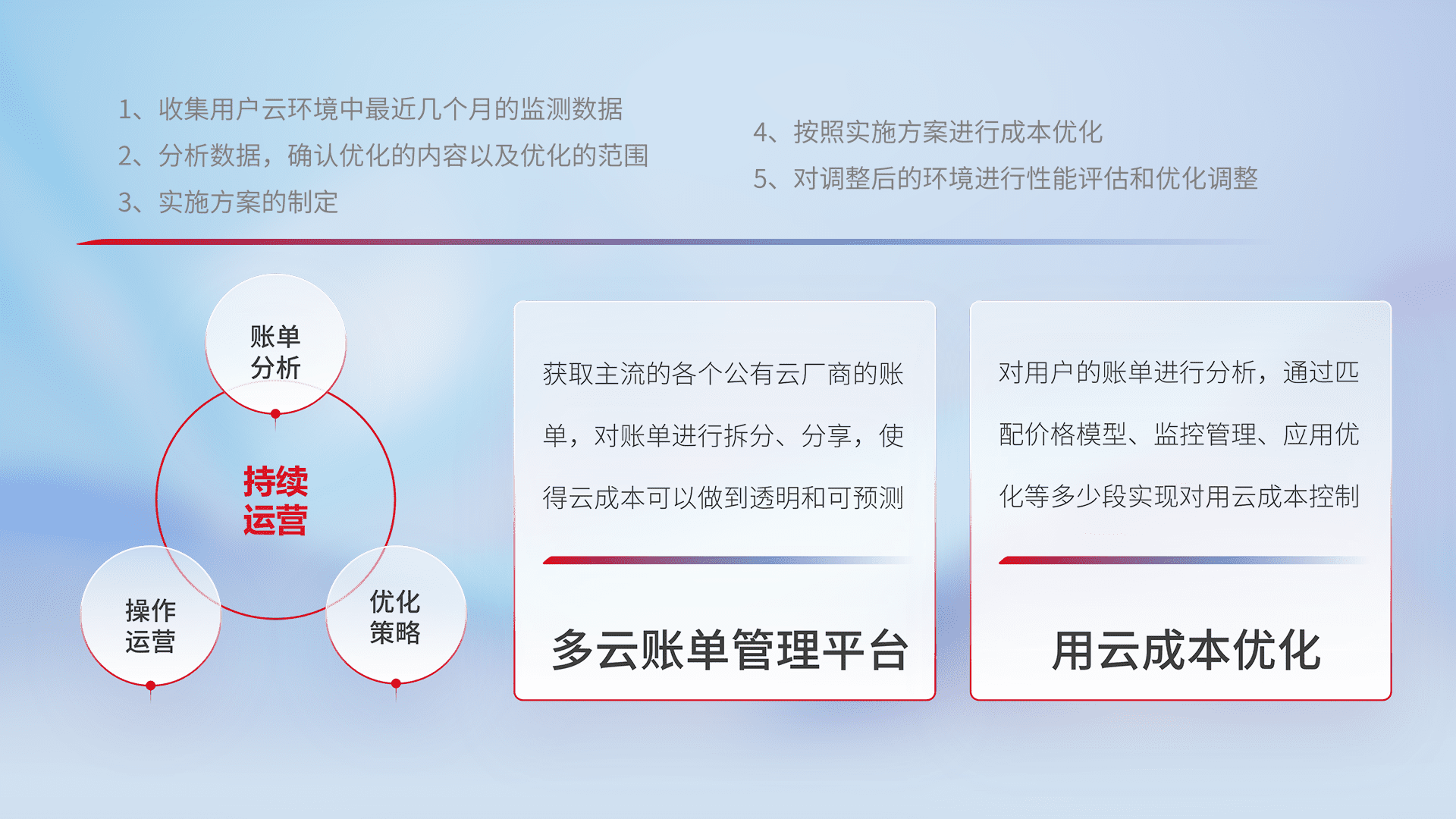 监控业务系统资源开销,,对资源的消耗精确计量,,,,实现费用的透明化管理,,,,不断提升资源使用率,,,,调整资源购买方式,,,降低资源费用成本,,用云成本可预测、、、、用云费用可优化,,云资源配额有据可依。。